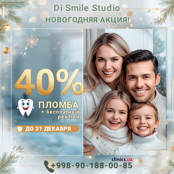 Новогодняя СКИДКА 40% на пломбу + БЕСПЛАТНЫЙ РЕНТГЕН в клинике Di Smile Studio