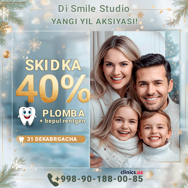 Yangi yilga SKIDKA 40% plombaga + BEPUL RENTGEN — faqat Di Smile Studio’da!
